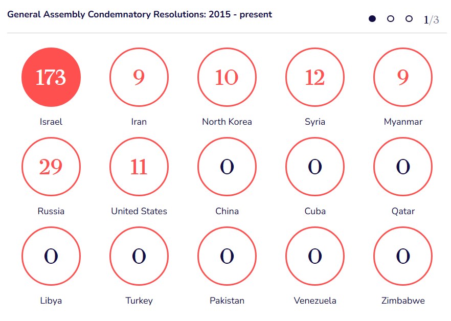 zie in onderstaande afbeelding de absurde hoeveelheid veroordelingen van Israël, terwijl gezwegen wordt over de echte misdaden die zich in islamitische staten afspelen.